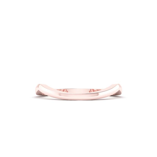 The Atlantis plain wedding ring in stunning 18k rose gold has a courted profile and perfectly matches the shape and contours of the Atlantis diamond engagement ring. Our Perfect Pair wedding rings are designed and crafted for a snug fit. Made with lines and contours that perfectly match those of the engagement ring, they complete a beautifully balanced set of exquisite bridal jewellery.