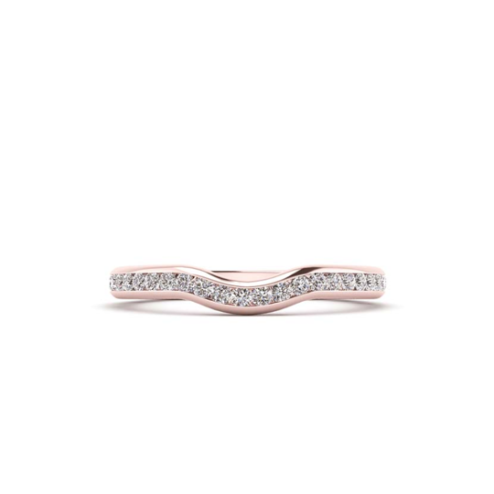 The Celine diamond channel wedding ring has a courted profile and perfectly matches the shape and contours of the Celine diamond engagement ring. It is set in stunning 18k rose gold with 0.30ct of diamonds in a channel, to half way around the band. Our Perfect Pair wedding rings are designed and crafted for a snug fit. Made with lines and contours that perfectly match those of the engagement ring, they complete a beautifully balanced set of exquisite bridal jewellery.